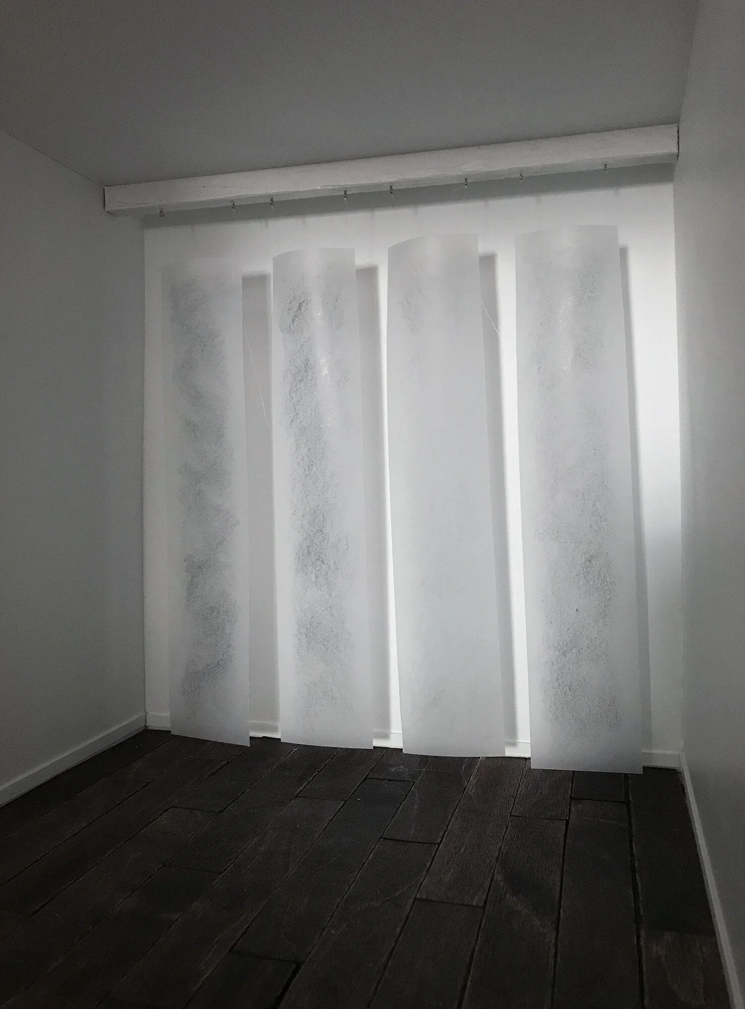 Installation, graphite on vellum (24”x120” each), video and sound, approx. 14’ loop, 2020.